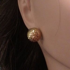 The earrings have a very interesting pattern, with diamond cuts & faceting, done on tiny baseball diamond shapes, all side by side like tiny mirrors on a disco ball. The backside is high polish, as shiny as a mirror
