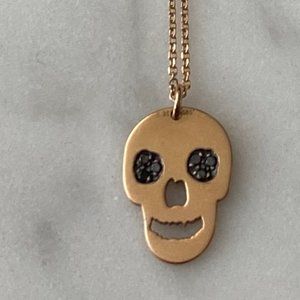 14K gold skull with black diamond eye necklace