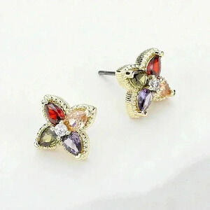 14K gp Clover Stud Colorful Stone Embellished Earrings