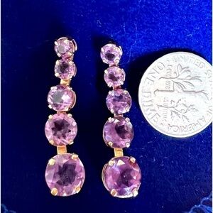 These stunning fine jewelry earrings are genuine 14K Yellow Gold featuring approx. 5 carats of faceted round amethyst gems.
