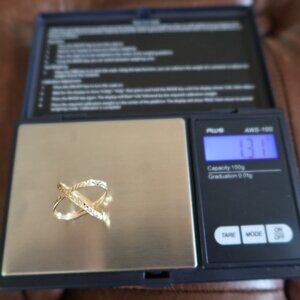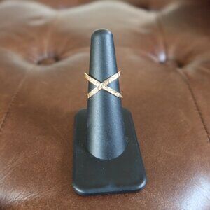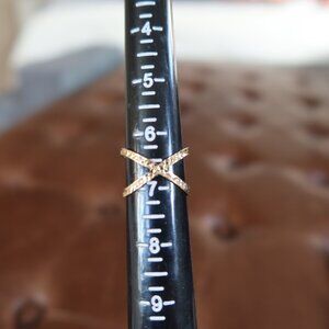 14K yellow gold diamond cut crisscross X ring size 7 ladies super sparkly