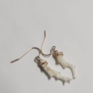 These elegant earrings feature a unique cream design wrapped in 1/20 14K gold filled accents, perfect for adding a touch of sophistication to any outfit.