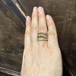 14K Gold Plated Elegant Stacked Layered With Zirconia Ring