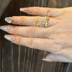 14K Gold Plated Ribbon Bow Diamond Charm Ring