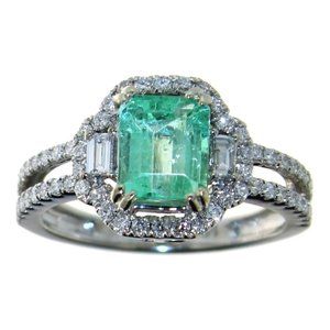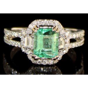 14KT GOLD 1.46 CT NATURAL EMERALD & DIAMOND RING