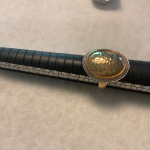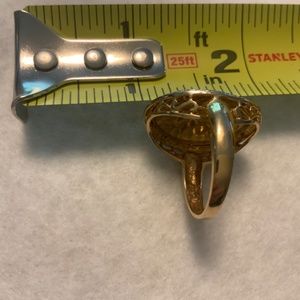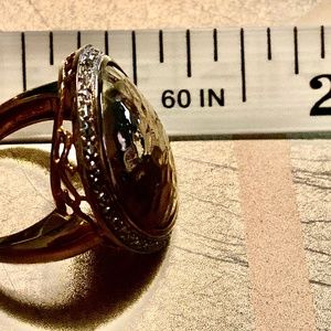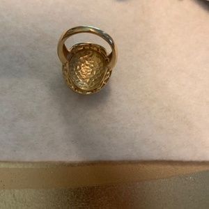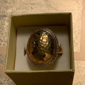14KT Oval Hammered Gold, Diamond Halo Ring Size 7 Total 5 Grams
