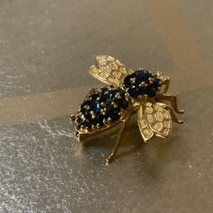 14KT Solid Yellow Gold with 20 Sapphires Blue Bubble Bee Vintage Brooch