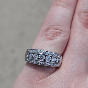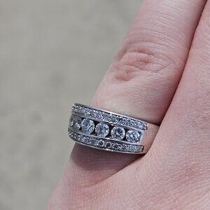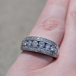 14KT White Gold Ornate 3 Row Diamond Channel Set Band Ring 0.82TCW Size 6