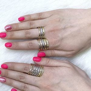 This 14K Tri Color Gold Diamond Cut Semanario Style Band Ring Comes with 3 Bands of Tri Color.