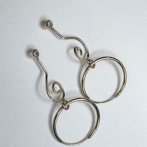 14KYG 0.015ct G/VS2 round brilliant diamond "Question Mark" Hoop earrings 1 1/4"