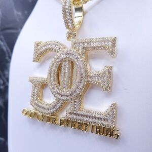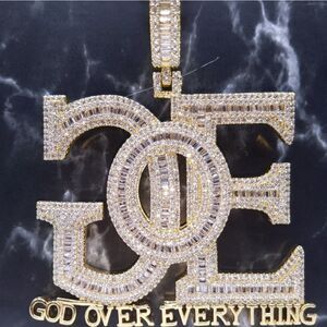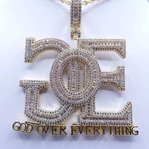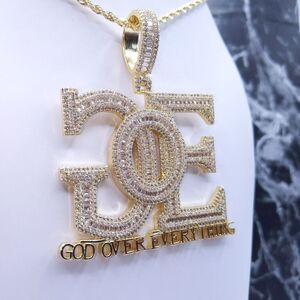 New Icy Supreme Quality 14K Yellow Gold Finish God Over Everything Pendant over Brass Dipped In Gold 5xTimes To Include a Free 14K Yellow Gold Finish 24inch x 3mm Rope Chain For Men.