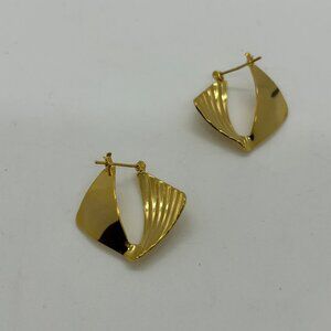 These 14Kt gold-filled earrings feature a fan-shaped, polished design. Lightweight and stylish, they enhance simple or formal outfits effortlessly.