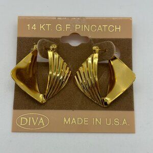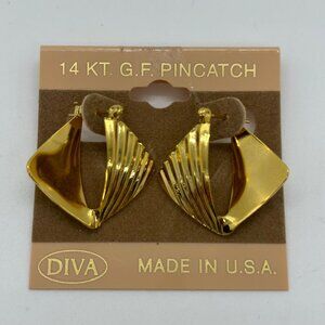 14Kt Gold Filled Pierced Earrings Diva Fan-Shaped Made In USA Elegant