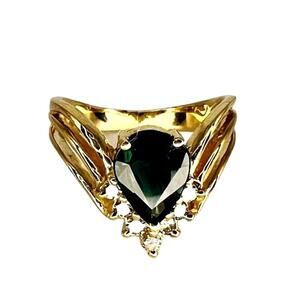 14Kt Yellow Gold Sapphire & Diamond Ring. Ring has Sapphire Pear with 7 Diamonds.