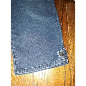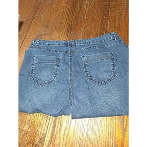 Good Used Condition Women's Size 14P Gloria Vanderbilt All Around Slimming Effect Denim Blue Jean Capri Pants Skimmers Long Shorts with Button Ankle Detail, Pockets, and Belt Loops
