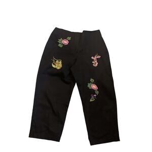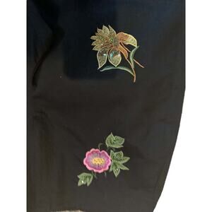 14P Larry Levine Petite Sport Stretch Women's Crop Black Dress Paints Embroidery
