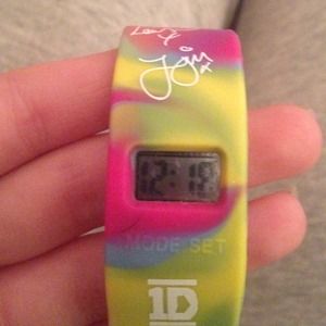 14 piece bracelet set. 1D watch ($4 alone) yellow and pink stars, green and yellow hearts, you only live once, black sparkle cross, black metal stones, blue with cross, purple mustache, blue yellow and green infinity bracelet, black yellow and blue infinity bracelet, pink purple and red knot bracelet, blue purple green and black fishtail bracelet, green infinity bracelet.