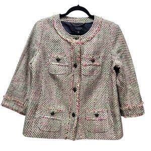 14WP Talbots Tweed Cotton Blend Button Down Blazer Suit Jacket with Fringe Trim