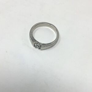A simple band with a center line and a simple round cut stone in a 4 prong setting