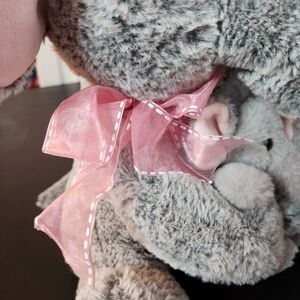 •14in Mom Plush Mom With Me Two Elephants Baby And Mom. Adorable gray elephant plush with soft pink accents, perfect for adding a cute touch to any room. There color may be a bit different in person than shown in the photos. Super soft. In good pre-owned condition. Bundle for a better price!