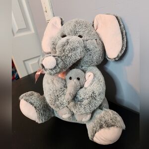 14in Mom Plush Mom With Me Two Elephants Baby And Mom