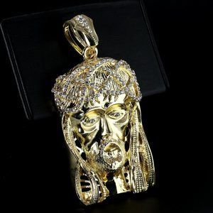 14k 10mm Cuban Chain Jesus Pendant Necklace