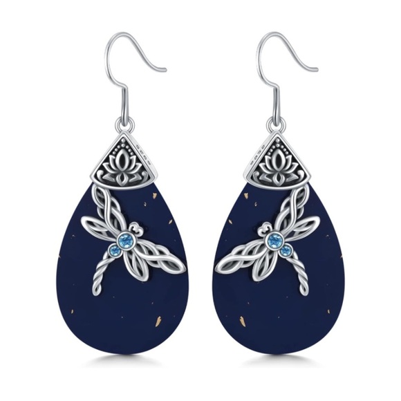 14k 925 Lapis Lazuli Celtic Dragonfly Earrings