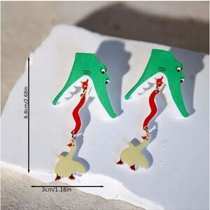 keywords: alligator "Playful" Charming Crocodile & Duckling Acrylic Drop Earrings - Cute Green & Yellow Statement Jewelry For Women, Perfect For Beach Parties & Vacations Y2K Inspired fun funky whimsical kawaii goth punk earrings jewelry girls women's teenager's