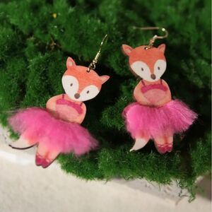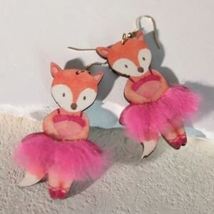 14k FOX in a TUTU ballet cute fun Whimsical novelty kawaii earrings