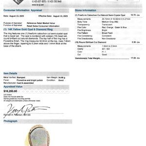 14k Gold 16.7 ctw Cabochon Natural Cut Opal Diamond Ring 34.66g