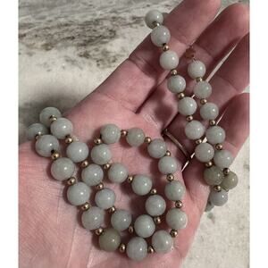 14k Gold 26” Light Green Jade Beaded Necklace Gold Spacers 54 Grams