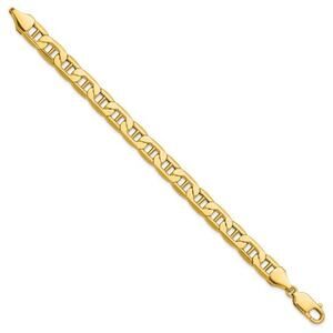 Make a bold statement with the timeless strength of the 14K Yellow Gold Anchor Chain Bracelet. Measuring 9 inches in length and 6.25mm wide, this bracelet delivers a powerful look while maintaining comfort with its semi-solid construction.