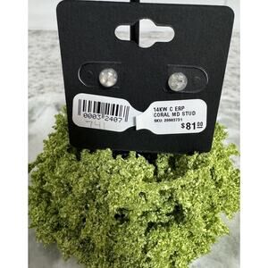 14k gold tested coral ball stud earrings. Coral ball measures 3/16 of an inch. Weighs 0.92 grams with backings. Could possibly be a dyed coral. I’m not sure. New with tags. (#741)