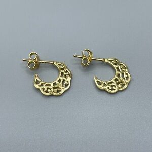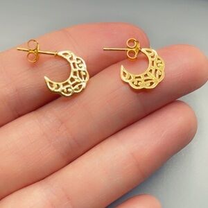 14k Gold Crescent Moon Half Hoops 925 Sterling Silver
