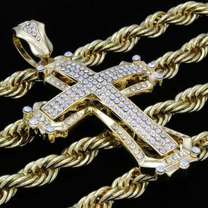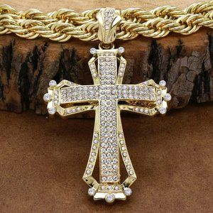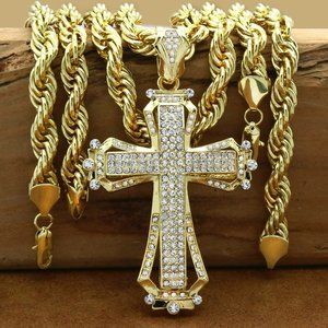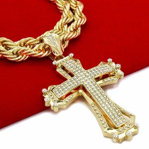 14k Gold Cross 20" + 24" Rope Chain + Pendant