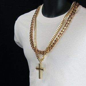 14k Gold Cross 30" Cuban Double Chain + Pendant