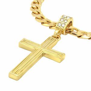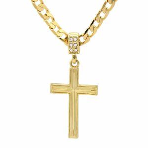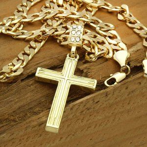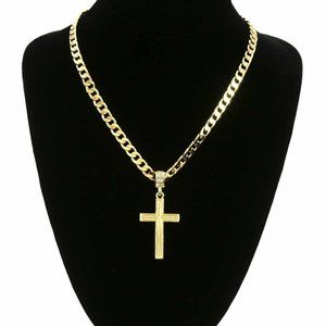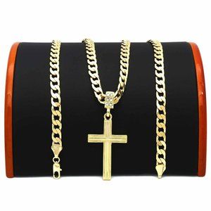 14k Gold Cross Set 24" Cuban Chain + Pendant