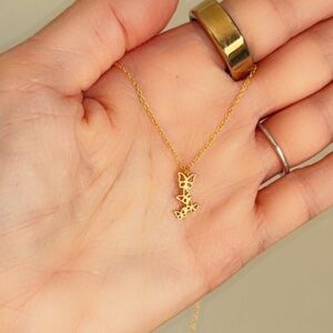 This 14k Gold Dainty Butterfly Necklace is an exquisite piece of jewelry that will add a touch of whimsical charm to any outfit. Crafted with 14k gold and high-quality sterling silver, this necklace features a cascading butterfly pendant that hangs delicately from a dainty chain.