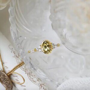 14k Gold Dainty Oval Cut Peridot Diamond Ring Band