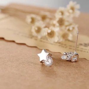 14k Gold Dainty Star Diamonds Stud Earrings Sterling Silver