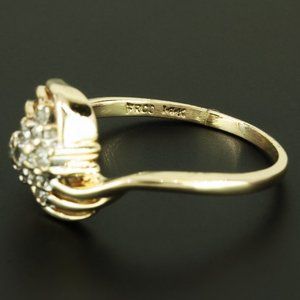 Crafted in rich 14 karat yellow gold, features a dazzling cluster of 9 round-cut diamonds, artfully arranged in a graceful swirl that catches the light and attention from every angle. With a total diamond weight of .20 carats, it’s the perfect balance of sparkle and sophistication.