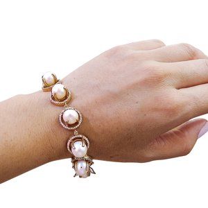 14k Gold Diamond & Pearl Bracelet