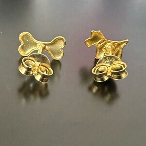 Add a touch of whimsy to your style with our 14k Gold Dog and Bone Mismatched Tiny Stud Earrings. These delightful studs are perfect for the dog or pet lover in your life. Crafted from 14k gold and high-quality sterling silver, they offer a unique and playful design that remains subtle and versatile. The Scottie dog and bone motifs add a charming touch to any outfit.