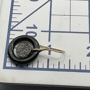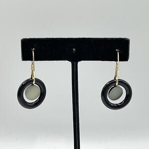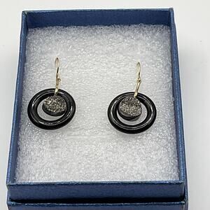 14k Gold Earrings Druzy Hemitate Black Onyx Dangle Hook 1.5” JCM Signed Dangle
