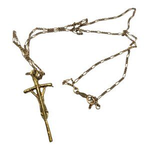 14k Gold Filled Cross Pendant Figaro Chain Necklace