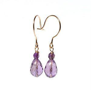 14k Gold Filled Natural Amethyst Tear Drop Dangler/ Earrings