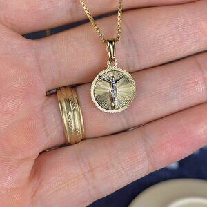14k Gold Filled Round Jesus Christ Necklace for Womens Birthday Gifts Box 18"