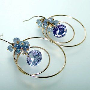 Purple Hydrangea Brilliant Chandeliers. 10 mm violette tanzanite quartz round cut briolette drops from double circle clustered with natural tanzanite rondelles. The base is 14k gold filled ear wire. The earrings are 2 inches long.
