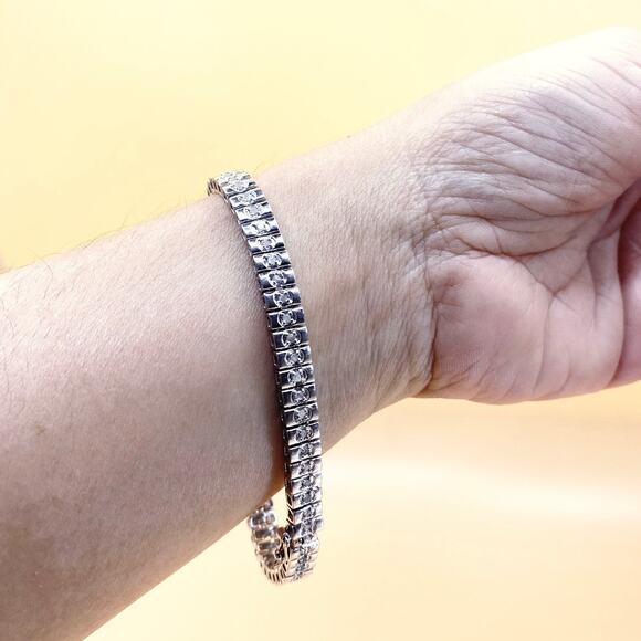 Add timeless sparkle to your wrist with this elegant 14k gold filled tennis bracelet featuring lab created monzonite stones. Measuring 7 inches long, this classic piece blends sophistication with everyday wearability. A perfect accessory for special occasions or daily glam, this bracelet is in excellent condition and dates back to 2005.