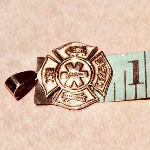 14k Gold Fire Resue with Cadieus symbol Maltese Cross Pendant